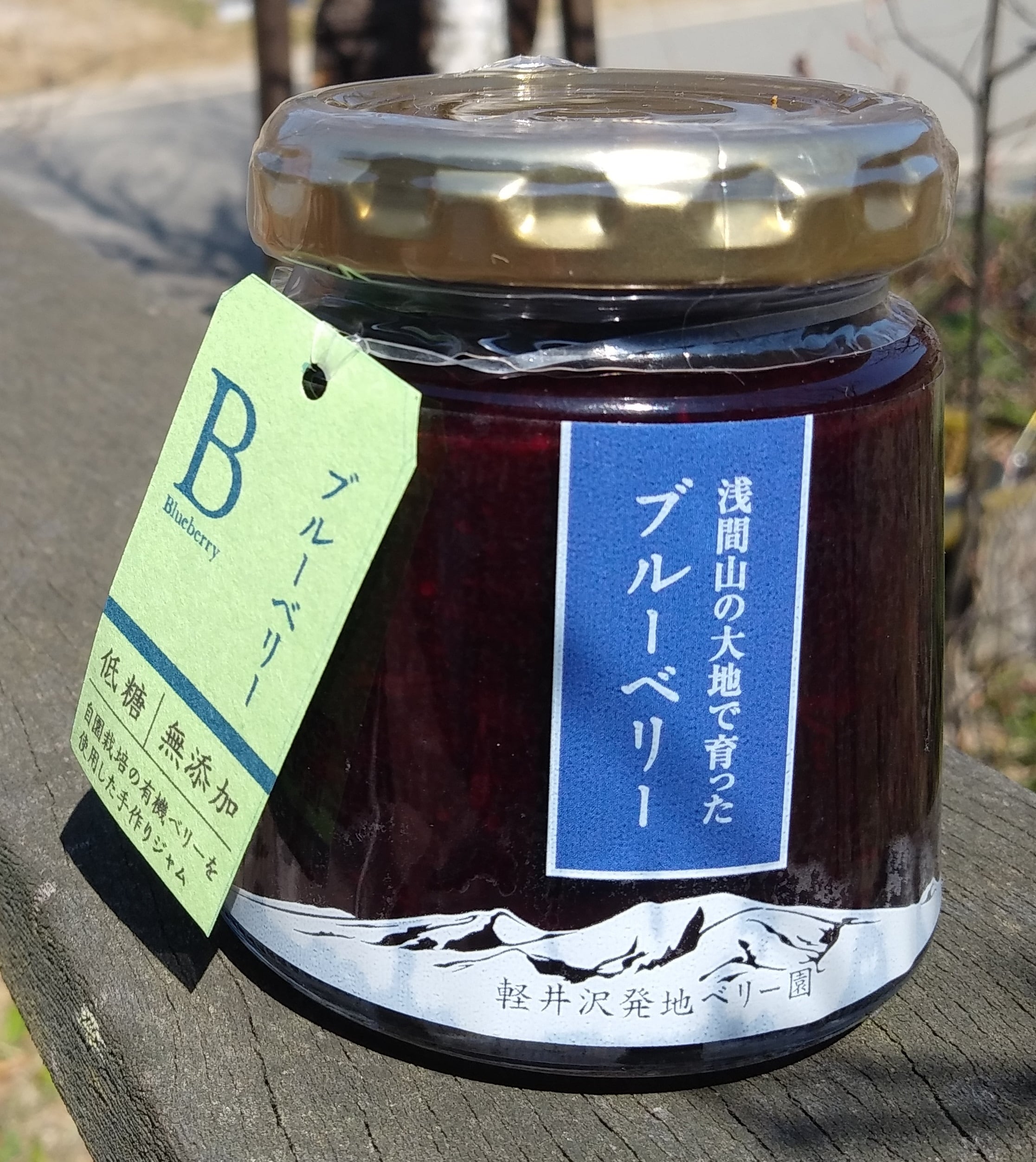 浅間高原のブルーベリーだけを使用し、無添加で低糖にし、ベリーの風味を感じるジャムに仕上げました。ブルーベリーにはいろいろな品種があり、ジャムに使ったその時の実の種類、熟し加減などでできあがりの粘性が異なります。緩い場合と固くなる場合があります。本園のジャムはすべてそうですが、砂糖以外の添加物を一切入れていなくて、成分調整を行っていません。固い場合はかき回すとほぐれて食べやすくなります。